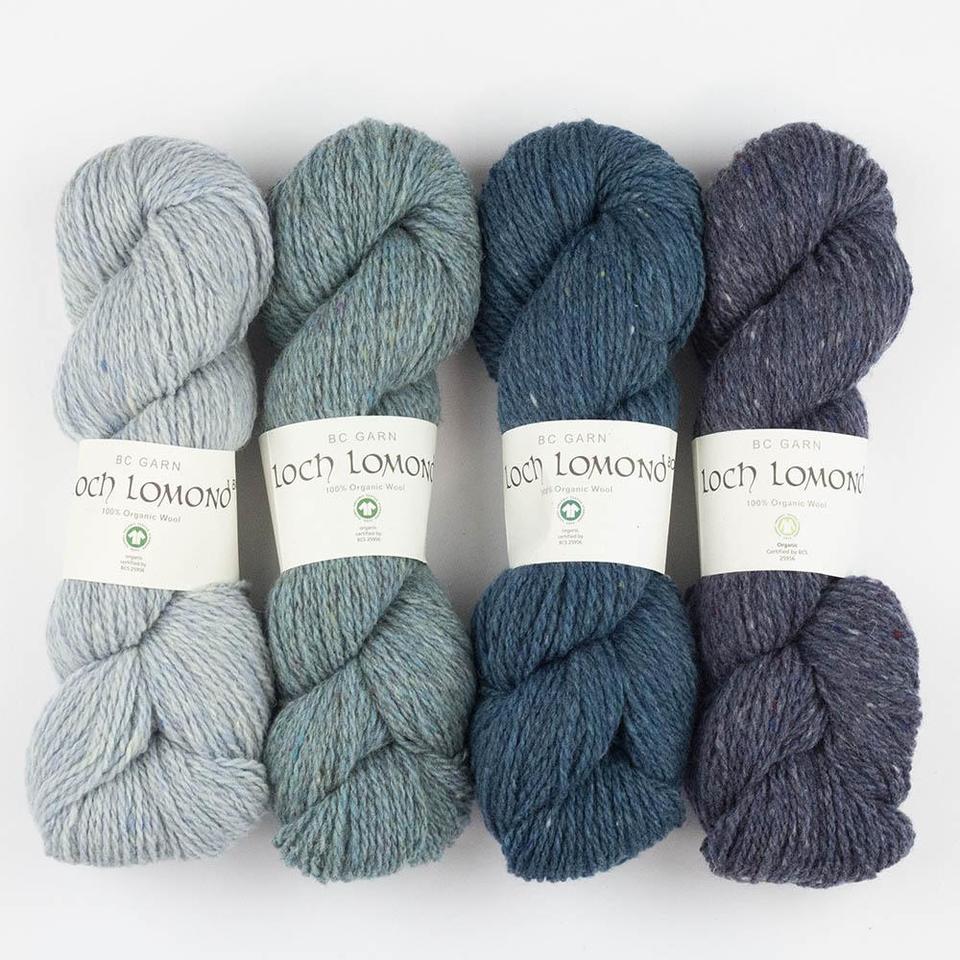 100% Wool.   A wonderful woolly British style yarn.  Loch Lomomd is woolen spun meaning it gives a light and lofty yarn with great yardage.  The added tweed nups complete the rustic look.  This would be a great substitute in patterns asking for Brooklyn Tweed Shelter.