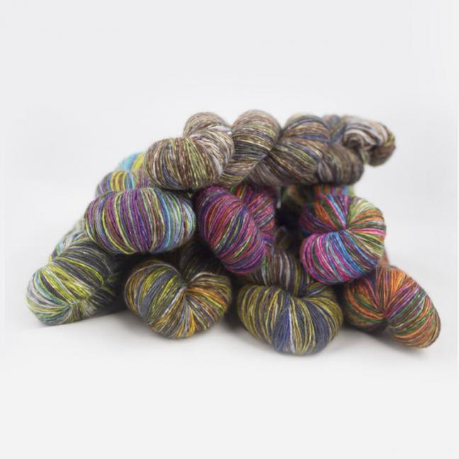 75% Merino yarn, 25% Nylon. Made from super soft South African merino from mulesling-free farms. Beautiful self striping and colour changing yarn which is stunning and not just for socks.