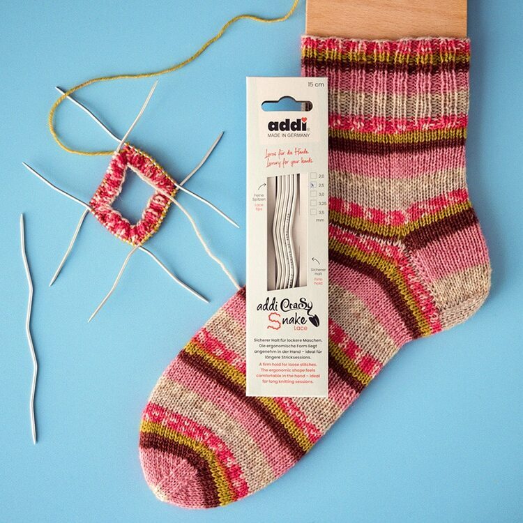 Whether you want to knit elegant socks or fine cable patterns. With the wavy needles addiSnake, knitting has never been so pleasant! The shape ensures that stitches stay securely on the needle - without losing any stitches. Beginners and loose knitters in particular benefit from the control. An innovative development with CraSy - Sylvie Rasch. Beginners and knitters with a difficult hand benefit in particular from the ergonomics of the needle, because allowing them to hold the needles loosely and effortlessly. An innovation developed with CraSy - Sylvie Rasch.