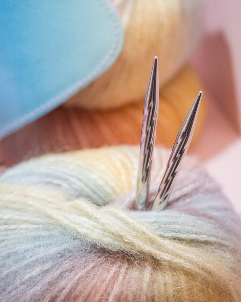 The spiral-shaped circular knitting needles addiUnicorn as an interchangeable needle system come in a fancy pink case with a stylish interior design. The elegant, spiral structure of the unicorn massages the hands when knitting and the shiny and shimmering surface gives the needle tips with the fine lace tips a touch of elegance.
