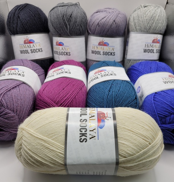 Himalaya Wool Sock Yarn is a super wash wool with 25% nylon to enhance durability. Available in a selection of solid colours