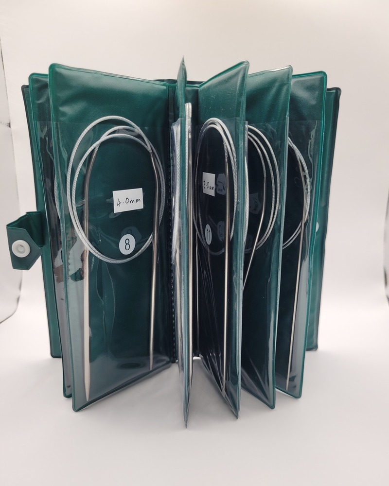 Includes a double ended crochet hook for picking up those dropped stitches and a plastic darning needle.